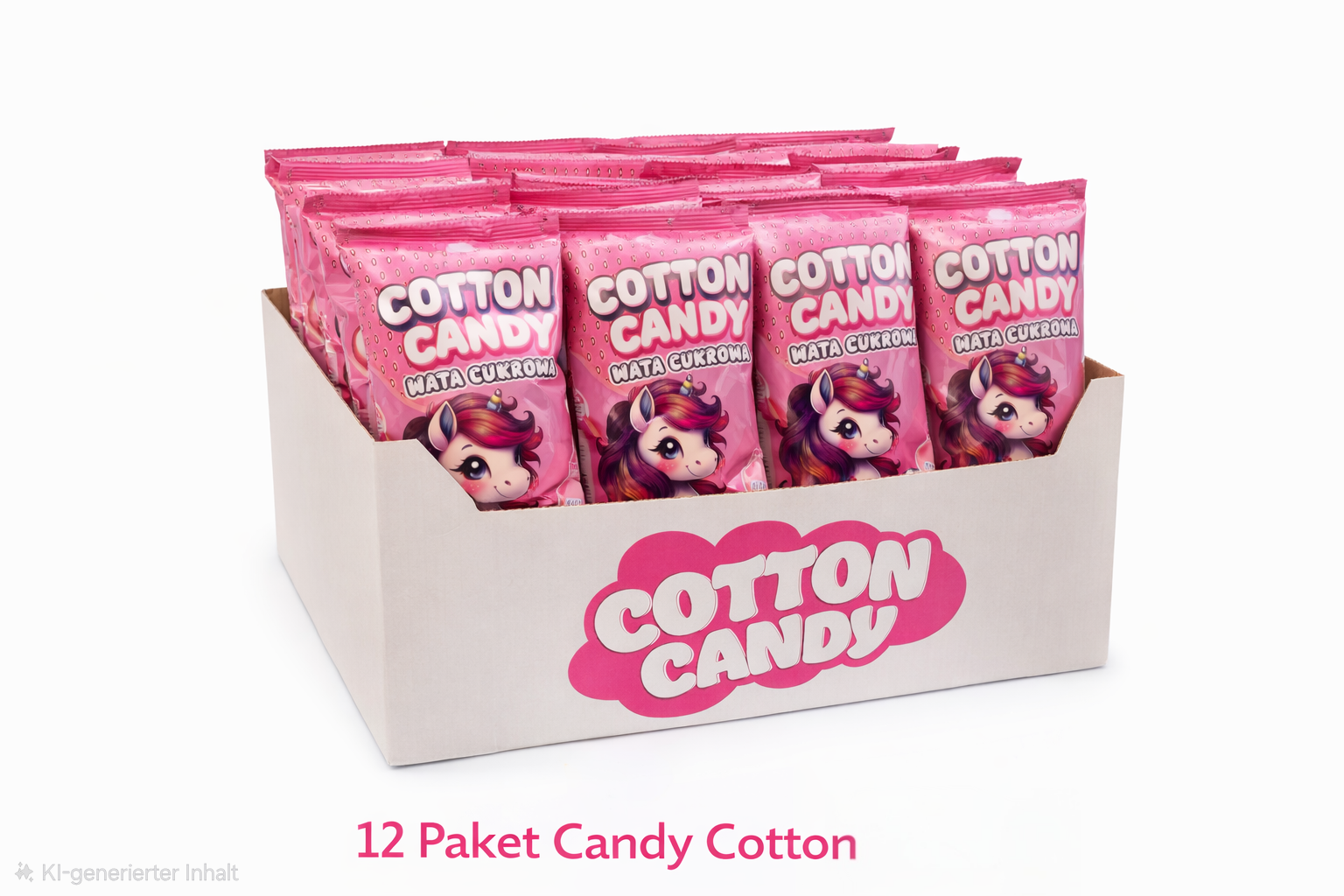 Die liebevolle Verpackung mit Einhorn-Motiv macht diese Zuckerwatte zu einem echten Hingucker – ideal auch als Geschenk oder Mitbringsel.